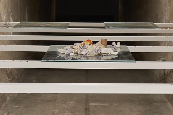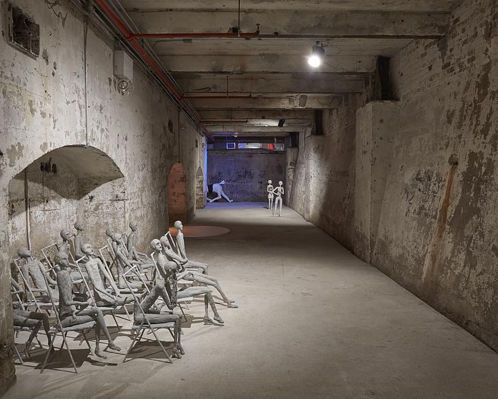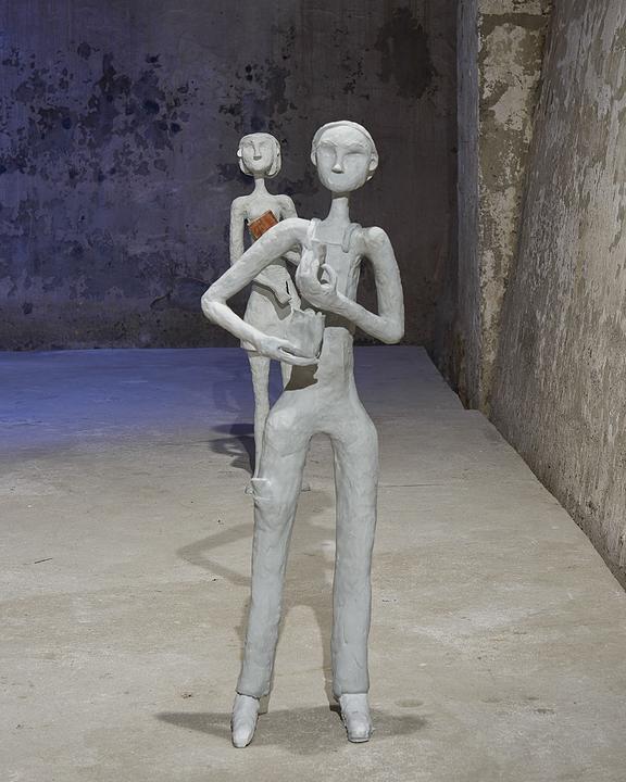 Sam Anderson has created a series of newly commissioned sculptures and video work for SculptureCenter's lower level galleries. Anderson creates compositions with figures and objects that inhabit oddly familiar relationships to the site and viewer. Often depicting intimate and internal dynamics, the arrangements are formal as well as psychological, effects expressed through repetition and mutations in scale and style. Using a range of found and made materials to construct her scenes, each work borrows from language as well as personal history to question how memory and emotion is indexed.