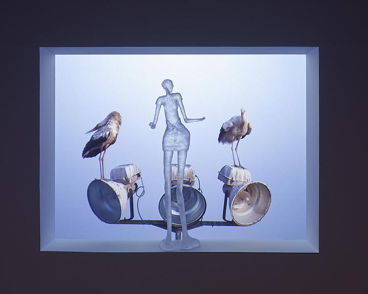 For her exhibition, Anderson abstracts and isolates the town square. Casting particular characters in mid-gesture, Anderson suspends the action of a community: a waitress, a stork, a children's orchestra, a teacher, an entertainer, a pedestrian, a teen actress, a public sculpture, a designer, a historian, and an escaped panther-each carries out their role despite the other as fragments of a larger network.