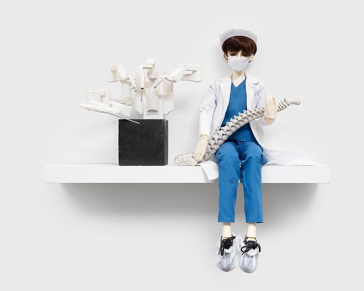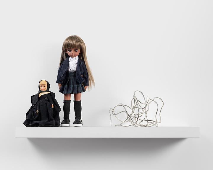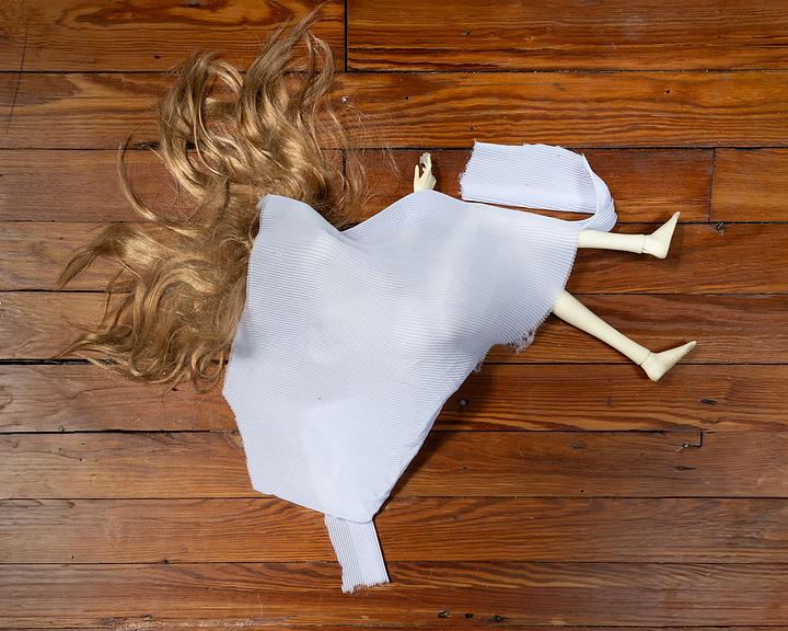 Her practice employs ambiguously embodied imagery that draws on cultural memory while resisting tidy interpretation. Here, she leverages the viewer’s familiarity with archetypes and tragic figures, deconstructing narratives through destabilized material gestures.