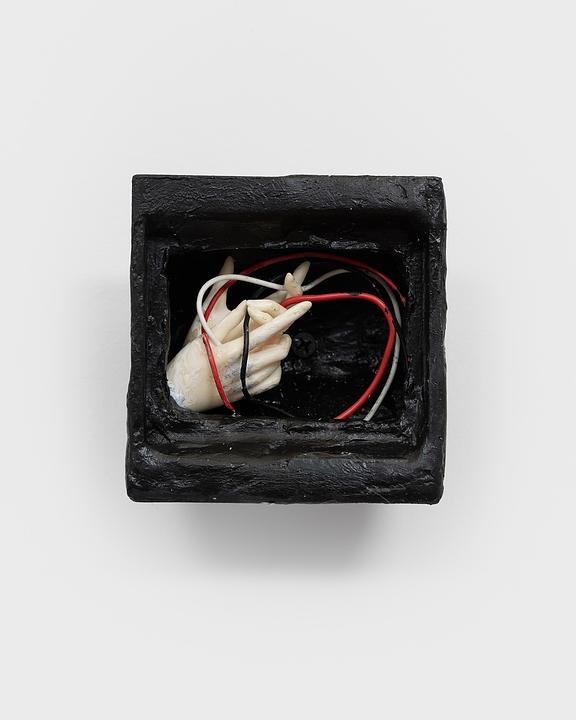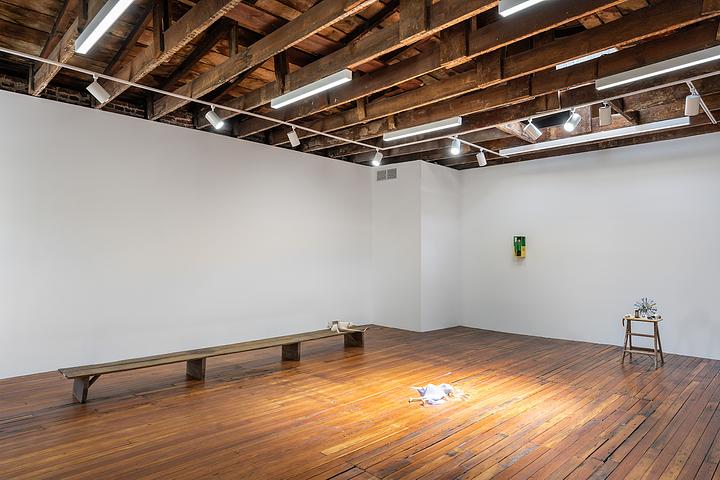 Central to the exhibition are works organized around triadic structures—a compositional device traditionally linked to narrative resolution. Anderson dismantles these narratives by locking unlikely elements in relationships of mutual dependence and conflict. This approach also reveals the inherent strangeness of exhibition-making, framing the gallery as a kind of ‘black box theater’, where meaning emerges through minimally staged encounters.