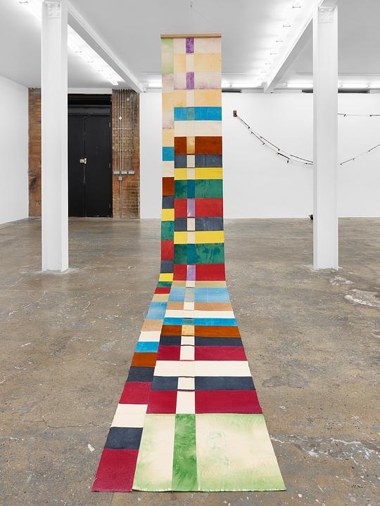 Acrylic, direct dye, and wood glue on sewn canvas, steel, magnets