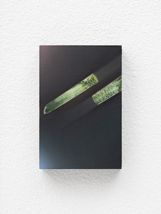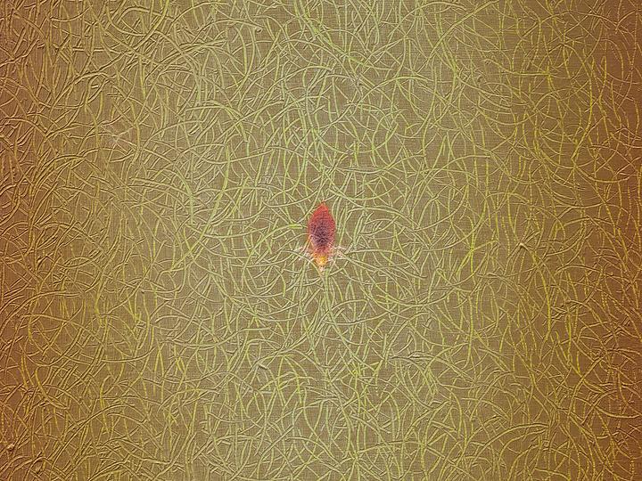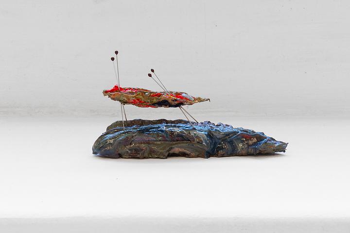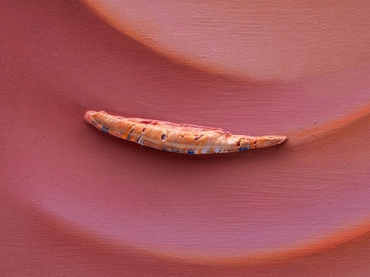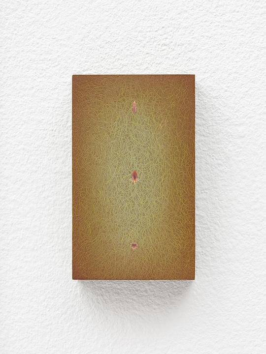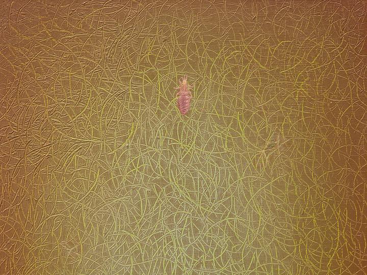 Oil paint, stainless steel insect pins