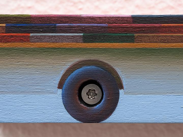 Oil and enamel on wood cleat, stainless steel tamper-resistant screws