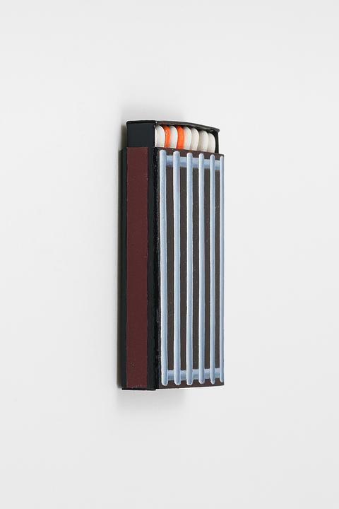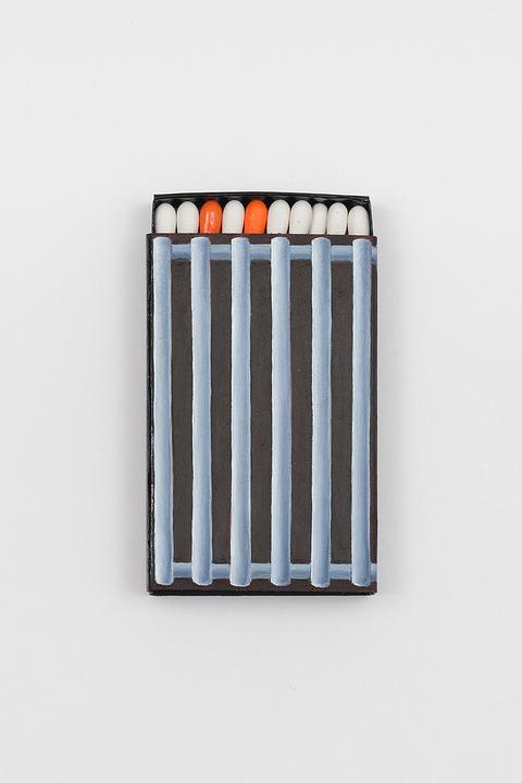 Oil paint, enamel, matchbook, matches