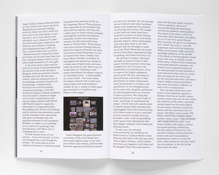 Published on the occasion of New Mythic Visualizations at Cushion Works, San Francisco, October 26–December 14, 2019, this book is a collection of photographs sent through email correspondence from Gene Beery to Mitchell Algus, Jordan Stein or Nick Irvin from 2006–2017. A core aspect of Beery's output in the last two decades, Beery's photographs provide a rich supplement to the artist's painting practice. Texts by Jordan Stein and Nick Irvin.